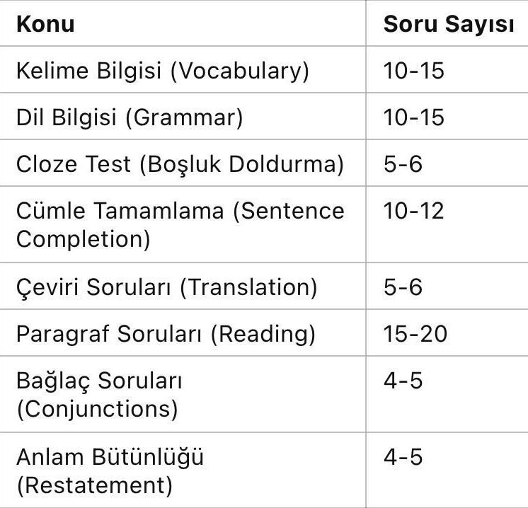 • YDS Konuları ve Soru Dağılımı